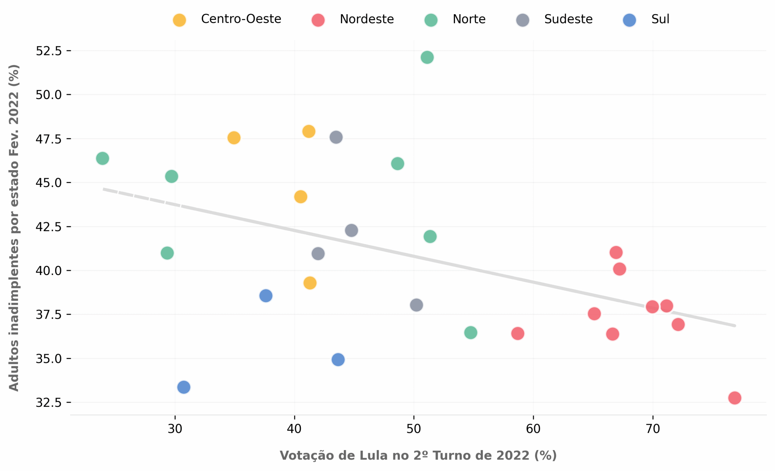 Endividamento dos brasileiros sobe em todo o país, mas rejeição a quarto mandato de Lula segue o mapa de 2022