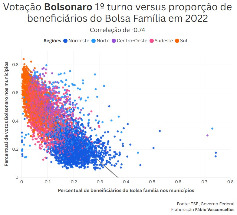 De todo modo, a eleição de 2022 voltou a repetir o padrão de forte relação entre voto e Bolsa Família a favor de um candidato do PT.